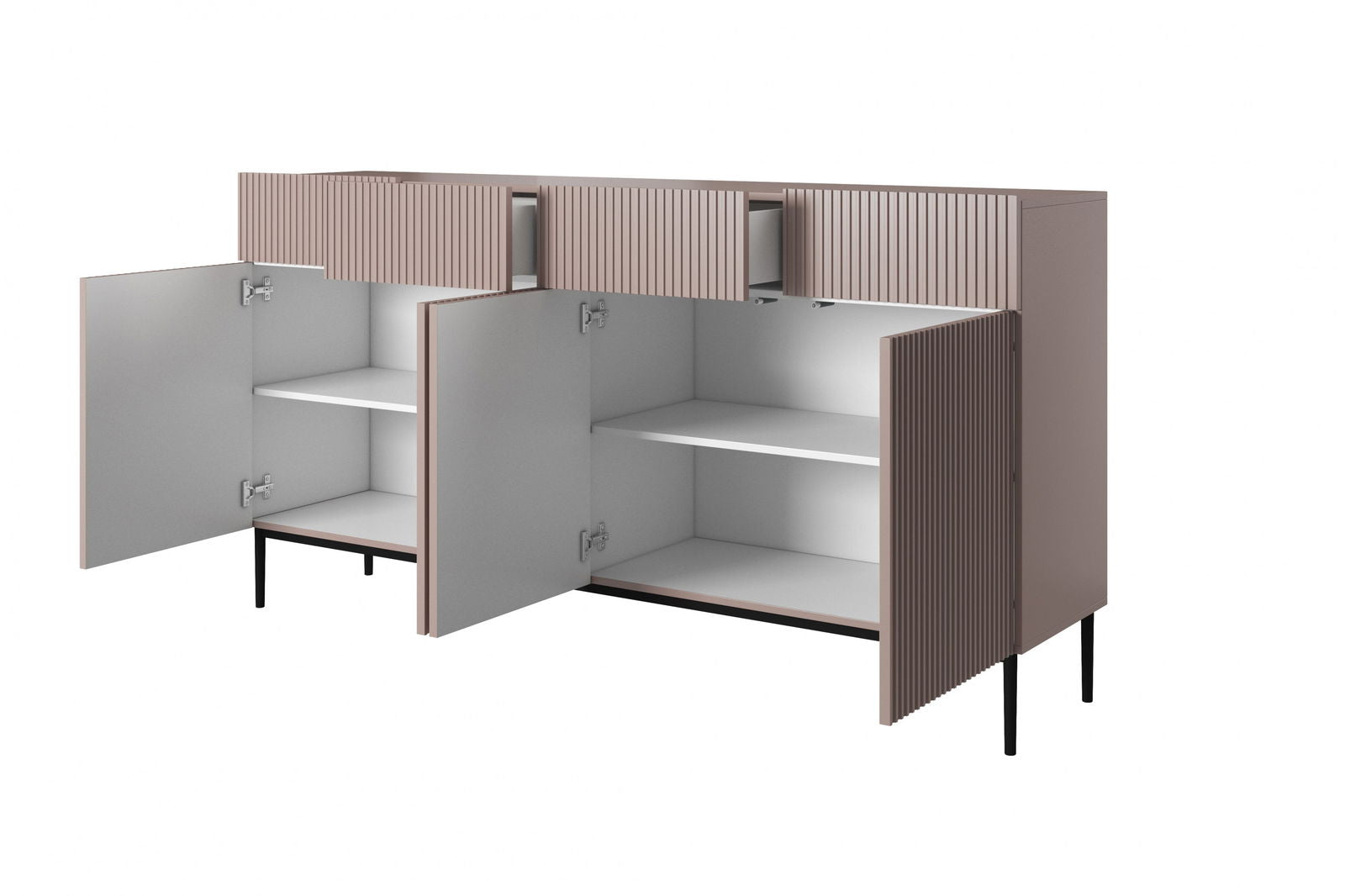 Komoda Nicole to doskonały wybór dla osób poszukujących stylowego, a zarazem praktycznego mebla do salonu, sypialni lub przedpokoju. Wykonana z trwałej płyty laminowanej, z frontami z płyty MDF o dekoracyjnym, ryflowanym wykończeniu, komoda zachwyca estetyką i odpornością na codzienne użytkowanie.