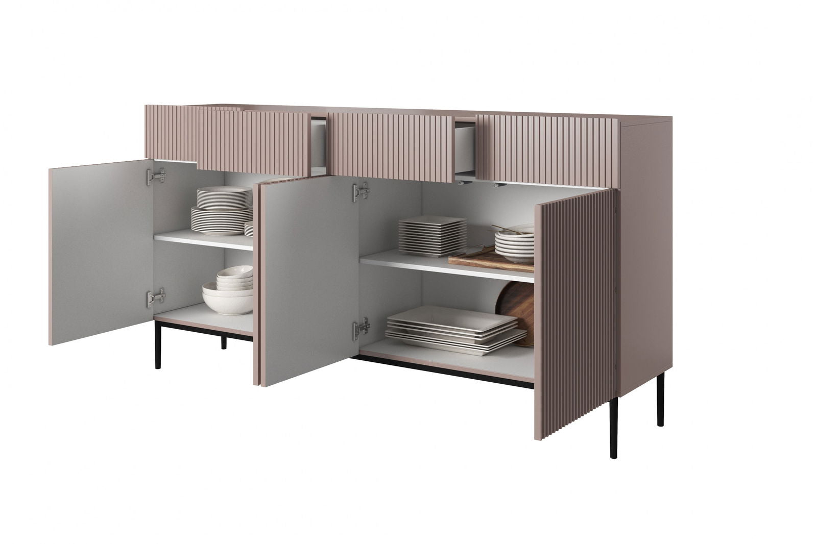 Komoda Nicole z czterema szufladami i metalowymi nogami 200 cm - antyczny róż / czarne nóżki