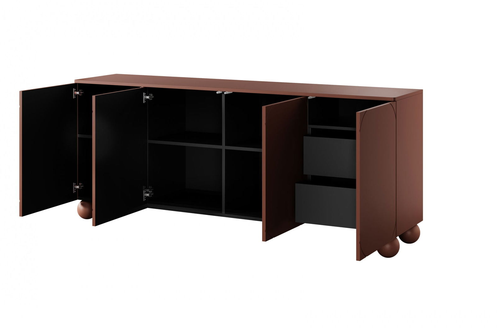 Komoda Sonatia II 200 cm czterodrzwiowa z dwoma ukrytymi szufladami - burgund