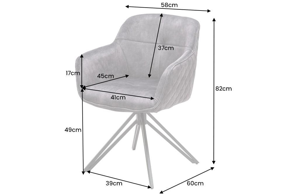 Jeśli szukasz szczególnie wygodnego krzesła o świetnym designie, powinieneś teraz przyjrzeć się bliżej krzesłu EUPHORIA. Nasz komfortowy klasyk retro z wyjątkowo grubą tapicerką na siedzeniu i tylnej powierzchni zachwyca ponadczasowym i modnym designem. Czarne metalowe nogi stanowią doskonały kontrast do szlachetnej aksamitnej osłony siedziska i zapewniają bezpieczne ustawienie na każdej powierzchni. Krzesło można o 180 stopni. Dzięki eleganckiemu i absolutnie ponadczasowemu designowi krzesło można łączyć z bardzo różnymi stołami do jadalni, nadaje się również doskonale jako wygodne krzesło konferencyjne w biurze.
