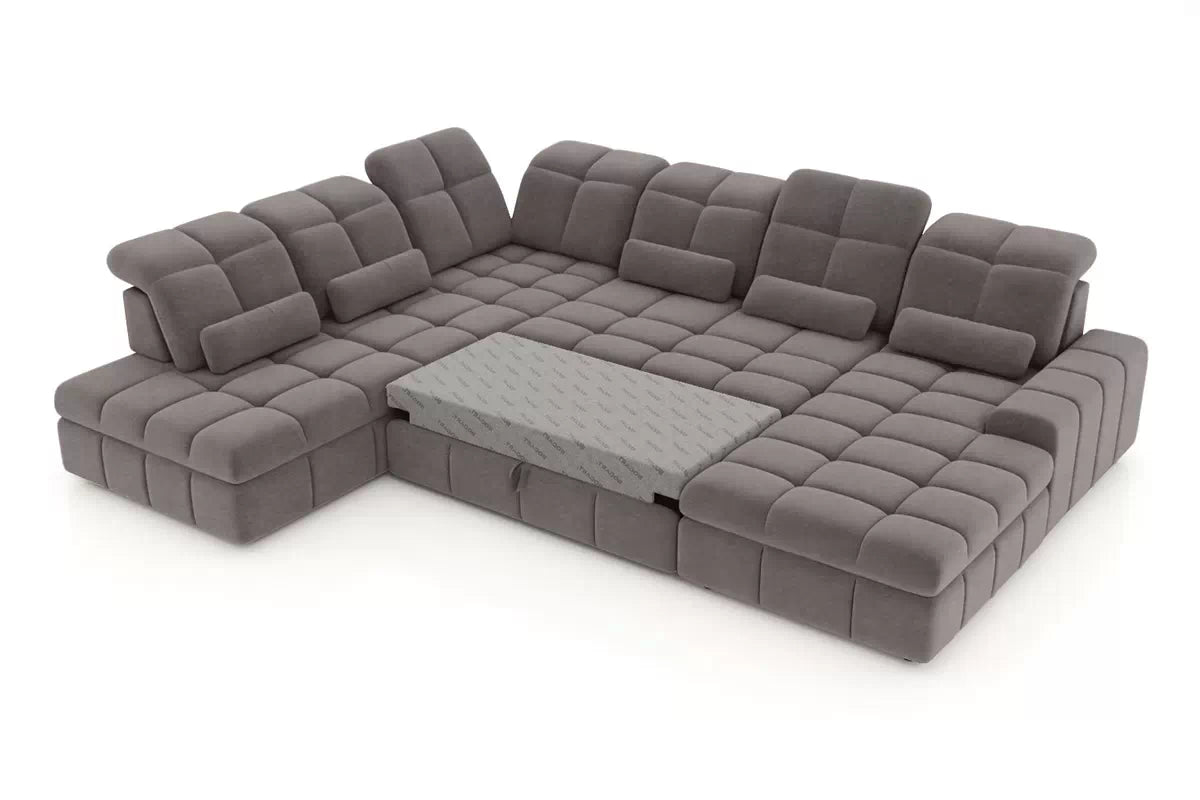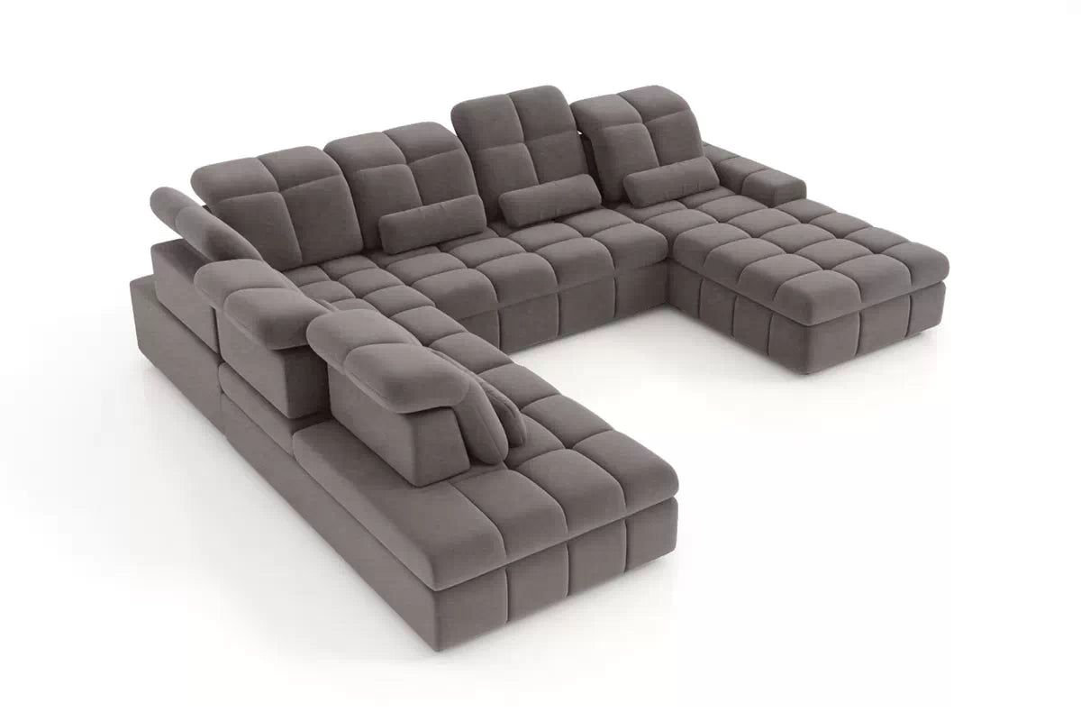 Narożnik w kształcie litery U to doskonałe rozwiązanie dla osób ceniących wygodę i nowoczesny design. Duża powierzchnia spania, regulowane zagłówki, elektrycznie wysuwane siedzisko oraz pojemne schowki sprawiają, że mebel jest wyjątkowo funkcjonalny. Wysokiej jakości materiały i solidne wykonanie gwarantują trwałość oraz komfort użytkowania przez lata. Idealny wybór do dużych, nowoczesnych wnętrz.