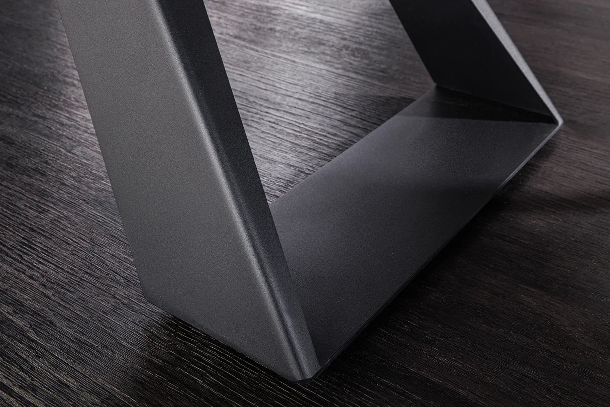 Stół CONCORD posiada duży blat wykonany z wysokiej jakości ceramiki w optyce grafitu o grubości 13 mm. Wykonany został z 10 mm hartowanego szkła oraz 3 mm powłoki ceramicznej. Blat stołu dzięki bardzo praktycznym prowadnicom można przedłużać od 180 cm do 230 cm. Imponujące nogi stołu wykonane z metalu w kolorze czarnym w nowoczesnym stylu stanowią solidną podstawę i dodają nietuzinkowego wyrazu i piękna.