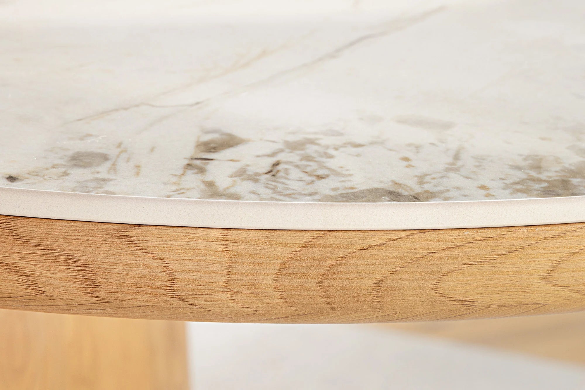 Jeśli szukasz stołu, który łączy nowoczesny wygląd z ponadczasową elegancją – ten model będzie strzałem w dziesiątkę. Stół z ceramicznym blatem w kolorze białego marmuru i podstawą z forniru dębowego to mebel, który przyciąga wzrok i świetnie odnajduje się w stylowych wnętrzach.