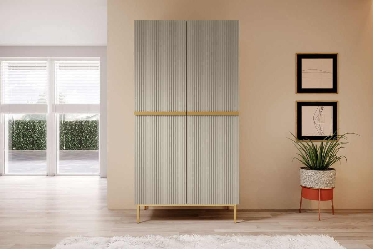 Szafa dwudrzwiowa Nicole z ukrytymi szufladami i metalowymi nogami 100 cm - kaszmir / złote nóżki