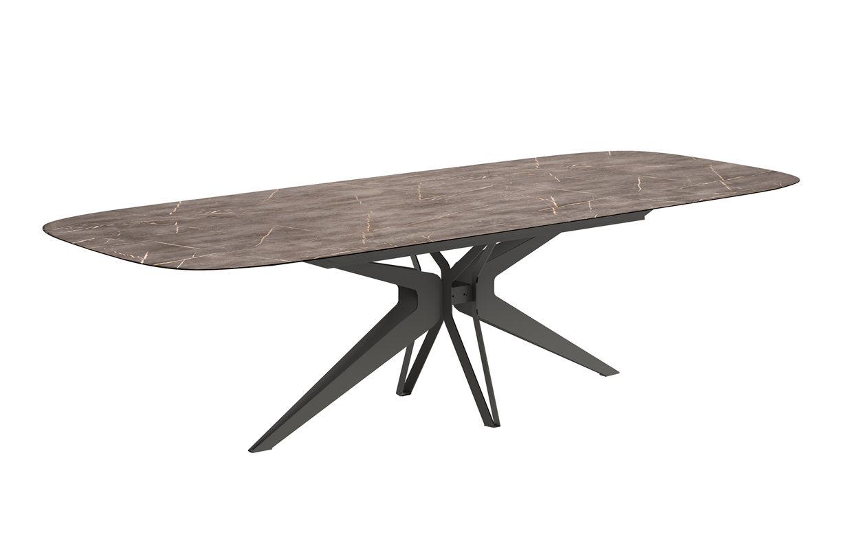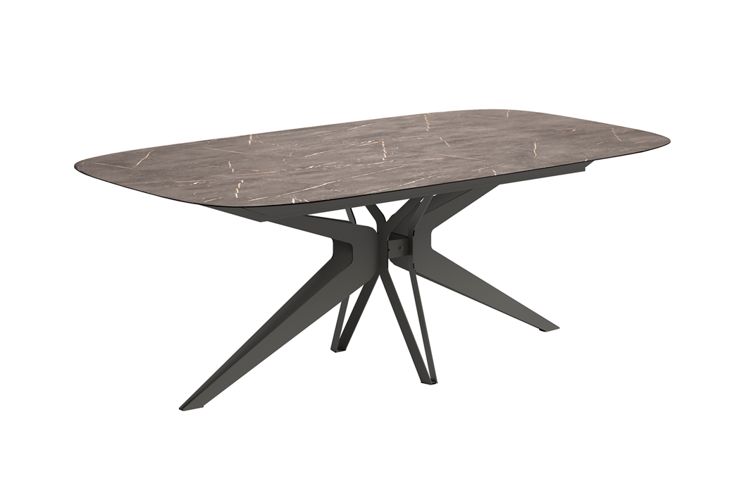Rozkładany blat stołu zawiera podstawowy blat o wymiarach 190 cm na 103 cm i jest rozkładany o dwie wkładki ceramiczne każda o szerokości 39 cm co daje pokaźna i reprezentacyjną długość blatu 268 cm. Stół robi duże wrażenie na żywo i podczas codziennego użytkowania. To sztuka designu.